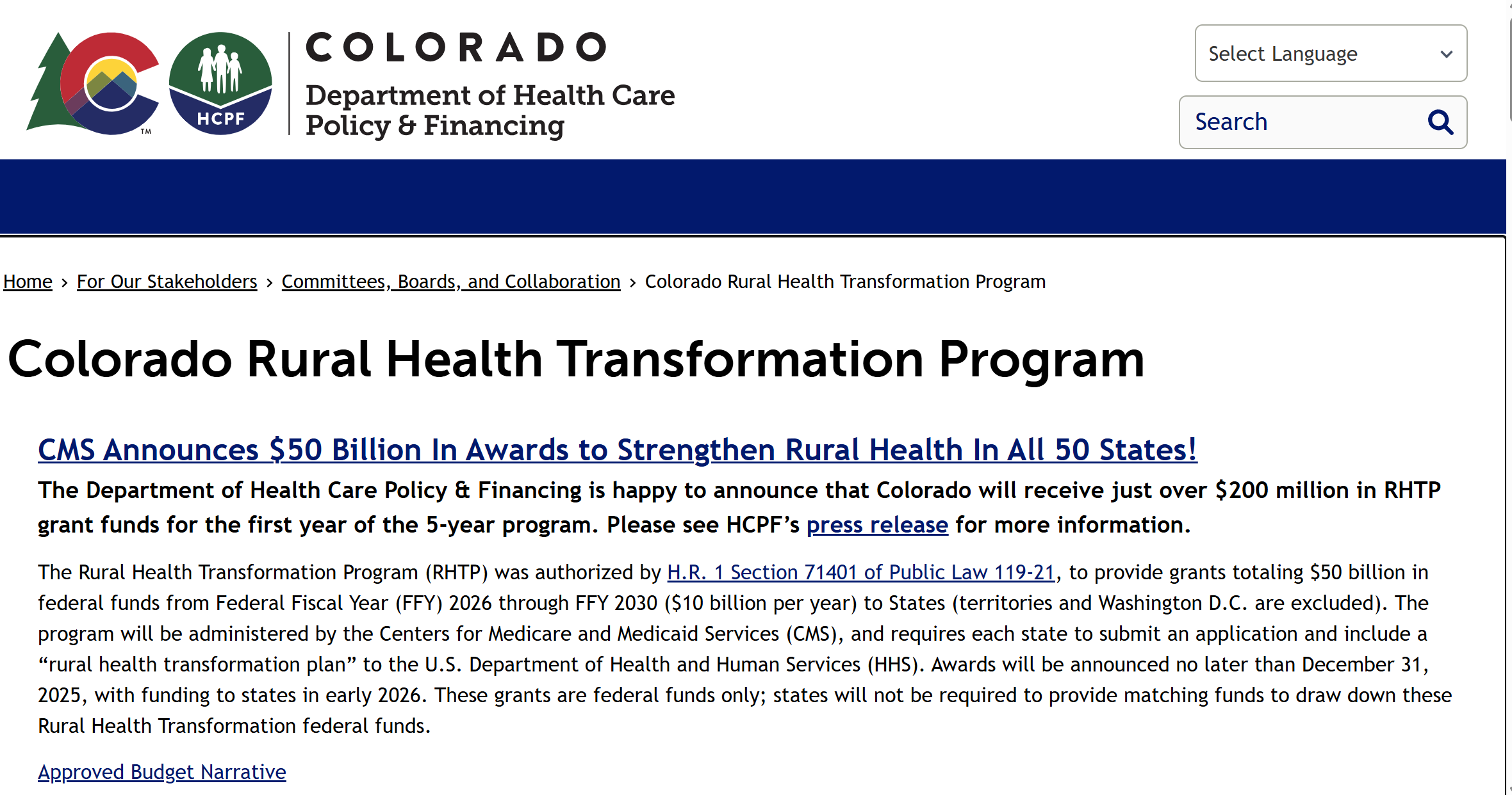 The Colorado Department of Health Care Policy & Financing (HCPF) met directly with CMS in February and March 2026 Colorado to review Colorado’s original 5-year draft of the RHTP Budget Narrative, Here is a detailed breakdown of the critical differences between that and the Approved Budget Narrative.