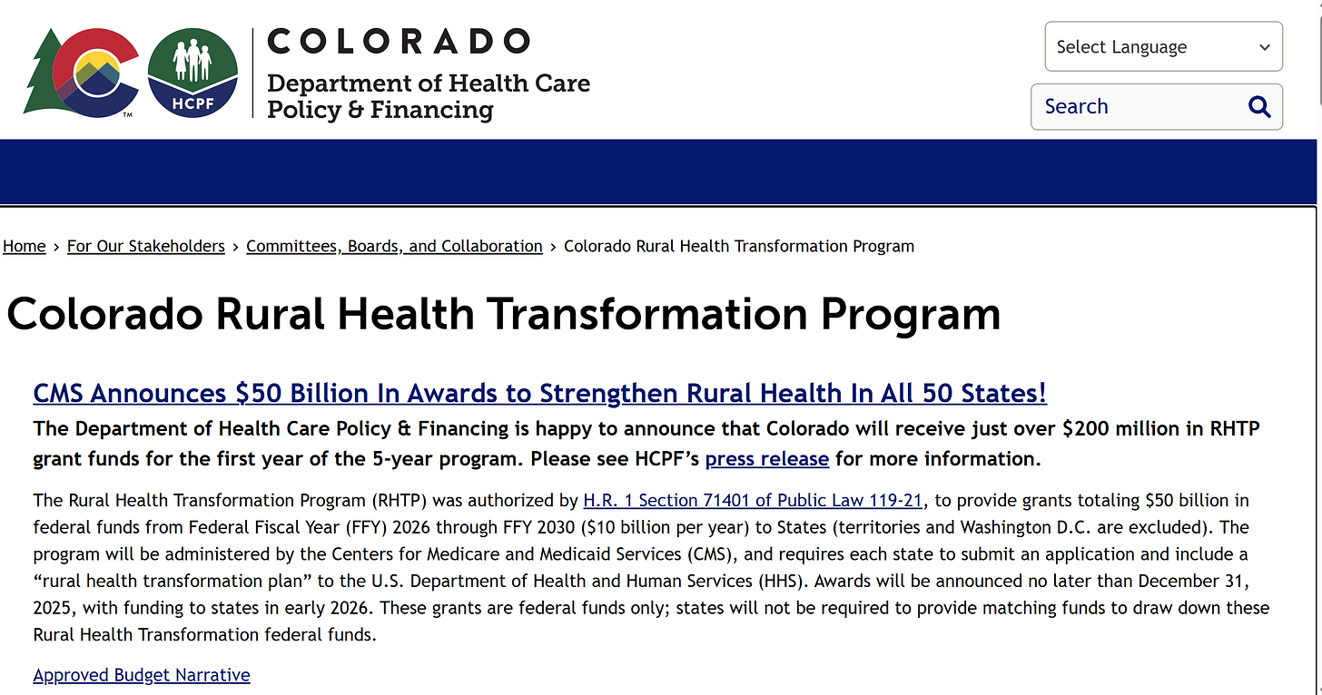 Colorado Rural Health Transformation Program (RHTP) Budget Update: What Changed?