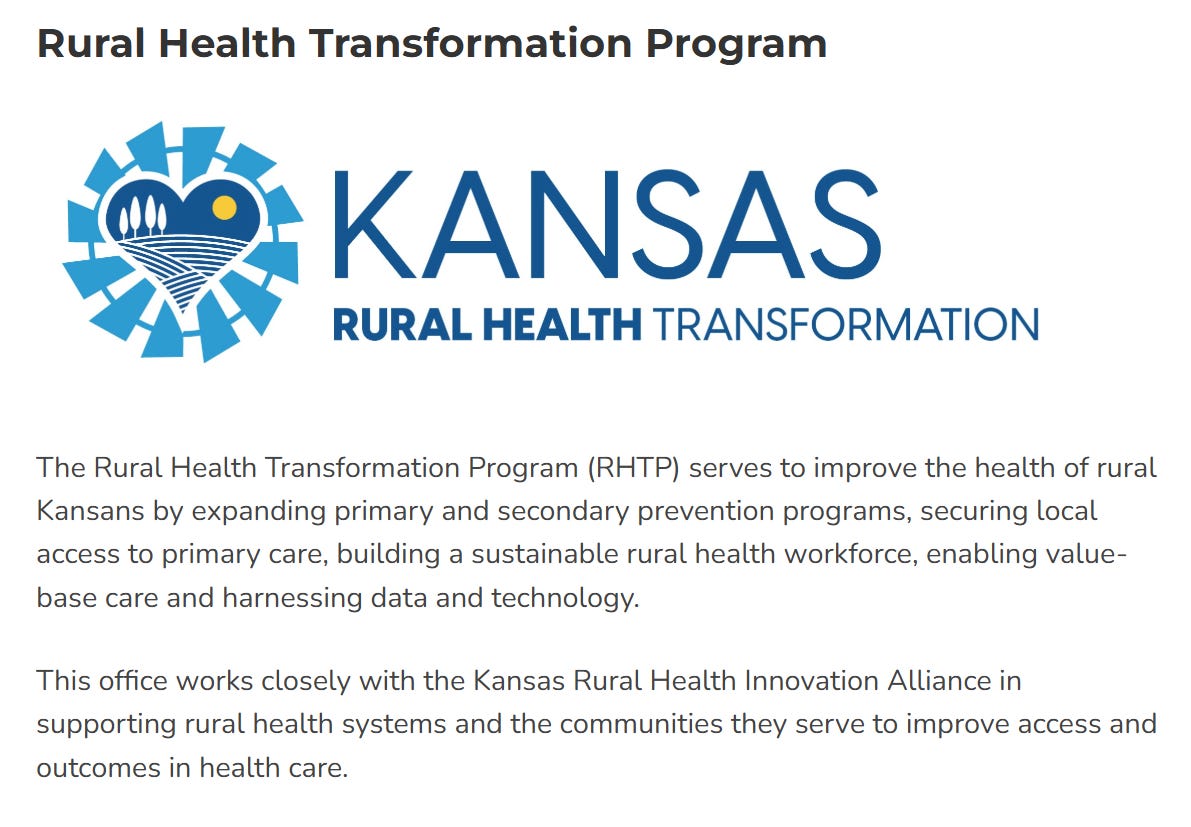 Kansas HB2555: A transparency and oversight bill requiring the Governor to report RHTP spending to legislative committees. Kansas was awarded $221 million from CMS to support the first year of the Rural Health Transformation Program. KDHE