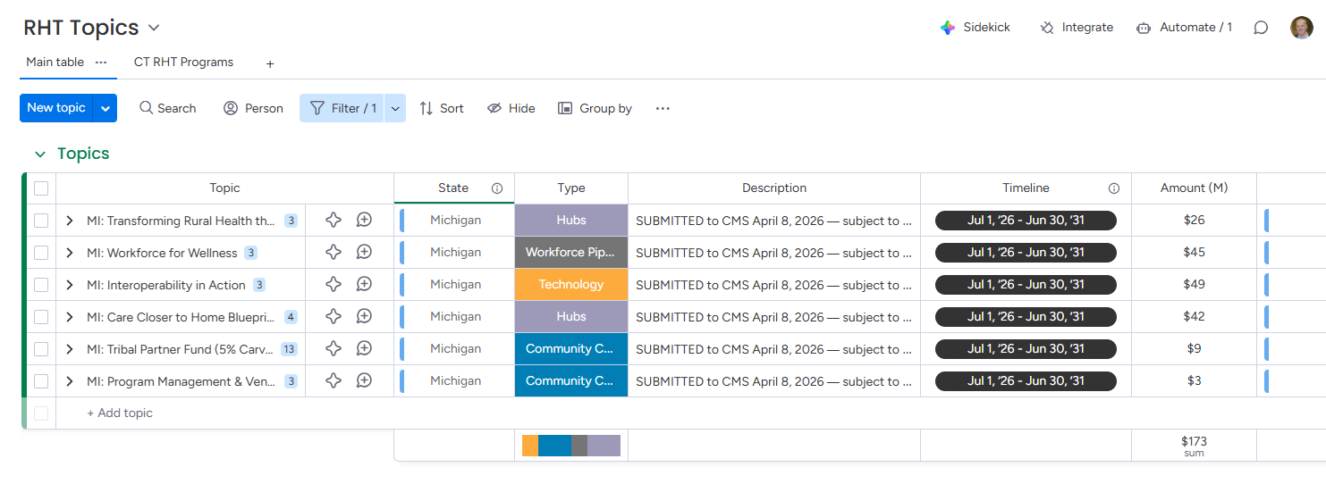The overall submission — a 60-page project narrative plus a 30-page budget narrative — is one of the most detailed state-level RHTP blueprints publicly released to date. The proposal names specific subrecipients for a portion of Year 1 funding while keeping a substantial competitive procurement calendar ahead for the majority of the funds. The proposal remains subject to CMS review and approval.