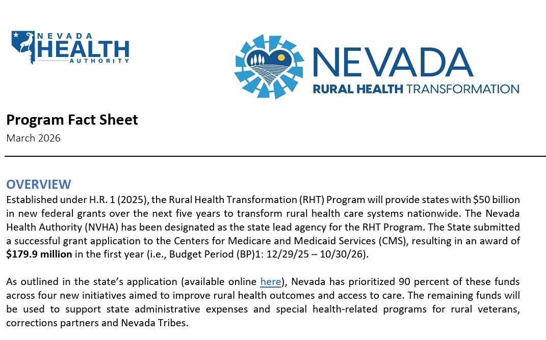 Nevada publishes Program Fact Sheet with additional budget detail
