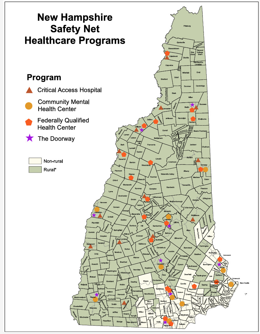 NH Safety Net Healthcare Programs Map (CAHs, CMHCs, FQHCs, Doorways)