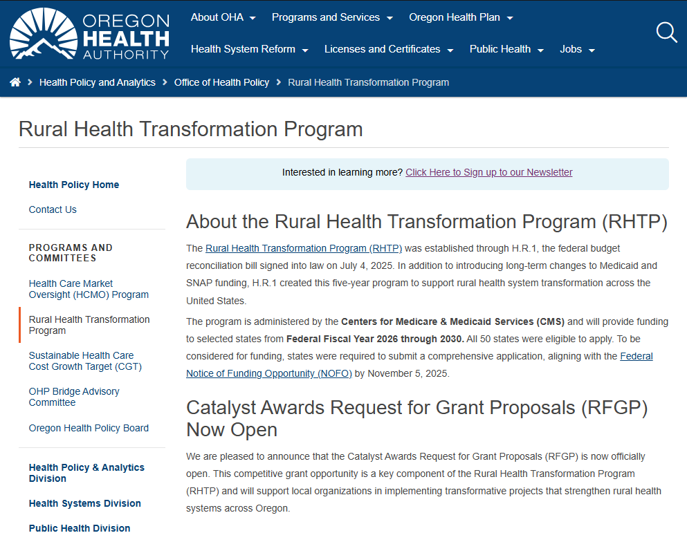 Source: Oregon Health Authority — Rural Health Transformation Program